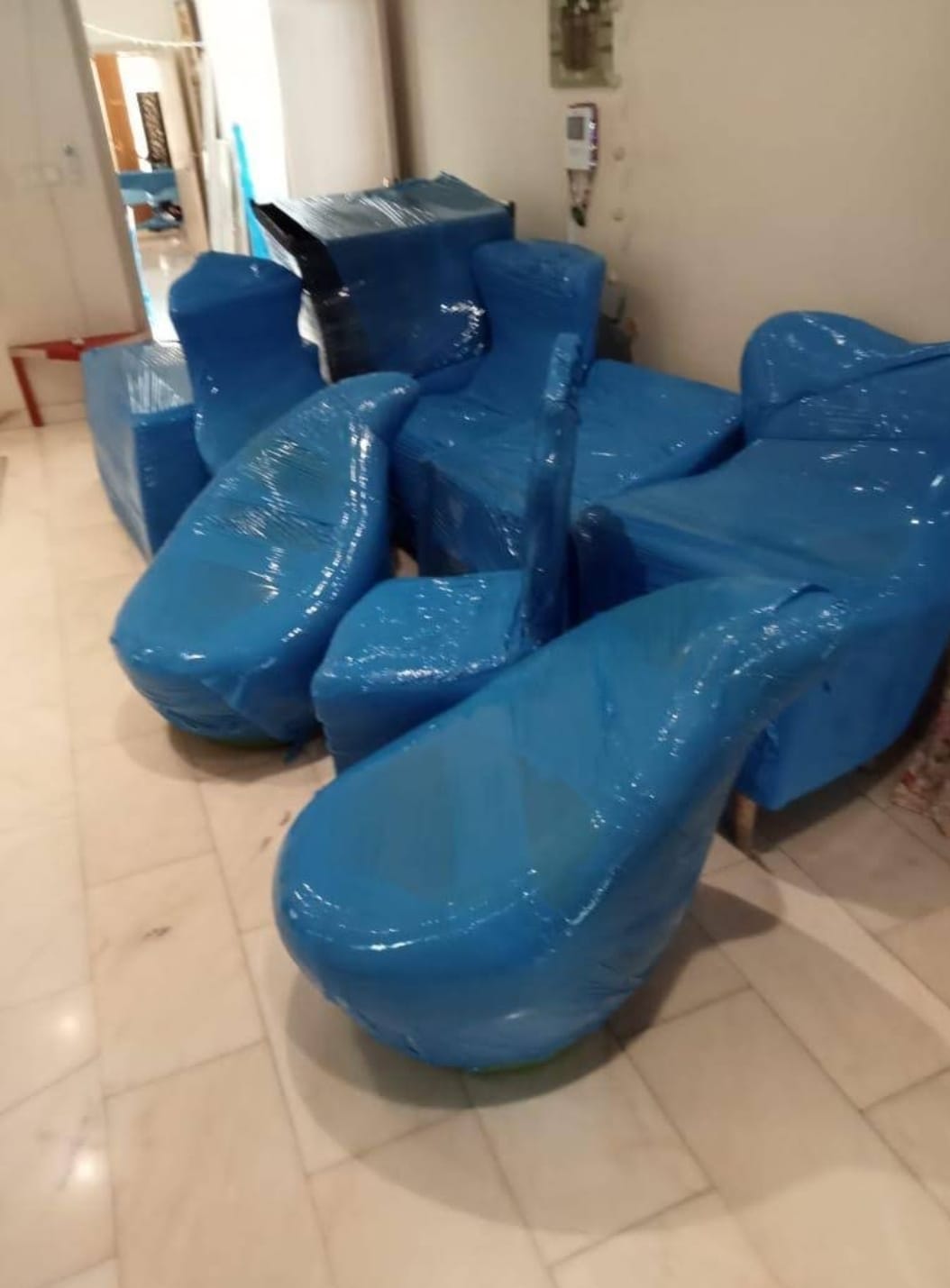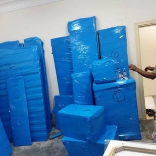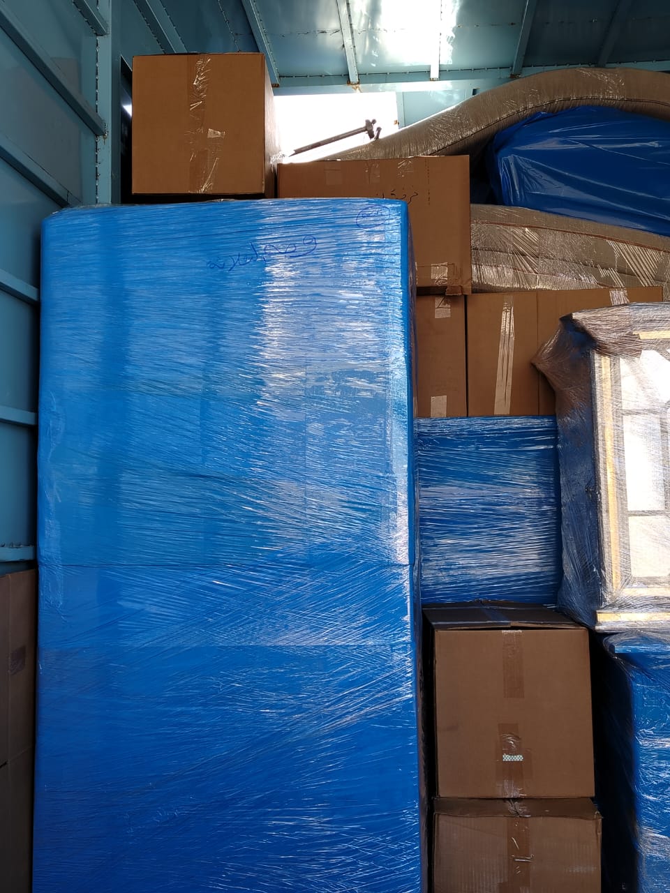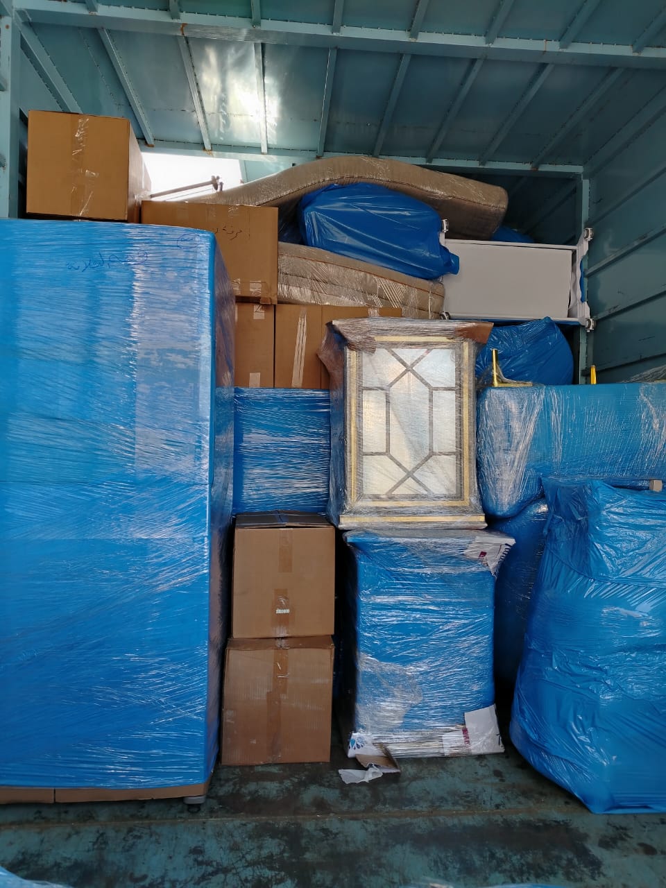 بعد التغليف يتم وضع العفش داخل كراتين نقل عفش مجانية تقدمها الشركة هذه الخطوة تسهم في الحفاظ على سلامة العفش والاثاث أثناء النقل.